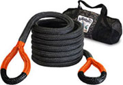| These professional recovery ropes are the toughest and strongest recovery ropes, developed from military specifications to pull all types of vehicles out of mud, snow, sand, ditches and up steep hills. Rescue ropes are made and hand crafted, from 100% double braided nylon, with a protective urethane polymer coating and commercially spliced and seized at both ends. Double braid nylon has good resistance to abrasion, sunlight, water and chemicals. The eyes (loops) of these mudder ropes are specified to be longer and stronger than other recovery ropes. The rope eyes can be changed to another color. These tow ropes have three layers, (1) An inner nylon core, braided looser to absorb more of the lighter loads, (2) an outer nylon jacket braided tighter for heavier loads and (3) the whole rope is dipped in a polymetric base giving it a protective shell. Bubba Rope® is a kinetic energy recovery rope (KERR) that provides superior performance, strength, durability and stretchability, that surpasses and is better than typical recovery ropes, snatch straps and chains. These tow ropes stretch and actively use its own kinetic energy helping vehicles get unstuck. All ropes are inspected and tested for both quality and breaking strengths on certified test beds at the factory. Bubba Ropes are used for ATV's, cars, jeeps, pickups, vans, SUV's, utility trucks, farm tractors, semi-trucks, trailers, motorhomes, fire trucks, and many other vehicles. There are six (6) different rope sizes offered. One year limited warranty against manufacturers defects offered with ropes. |