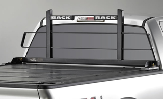The Original BACKRACK™ design maintains the truck's stylish exterior appearance while providing strength and functionality as a truck rack even if the truck is used for work or personal use. BACKRACK'S™ frame is a simple and open design making it easy to hook a bungee cord or ratchet strap around the rectangular flat bar. This truck rack is designed to fit onto the truck bed, protecting the rear window, cab and passengers from shifting cargo. The 2” square tubular frame, is constructed from American made Hot Rolled Pickled and Oiled (HRPO) steel, weld all joints together for strength, durability and last a long time, then finished with a very durable, black, powder coating, protecting the steel from rust, corrosion, scratches and have a smooth, professional look. Every steel frame, has steel end caps welded at the ends on each steel tube, and attached to rail mount brackets, preventing the steel tubes from collapsing under pressure. This utility rack is used on fleet, work and privately owned pickup trucks. This truck rack is a practical tool, made with a short top horizontal steel bar and sturdy structure to carry, secure and manage cargo and long items such as lumber, ladders, pipe etc. The rack's low profile design allows trucks to park in any personal or multi-level garage. The side rails and rear bar are used with the rack for more cargo control in and/or on the truck bed. The BACKRACK™ is compatible with certain Tonneau Cover Brands. There are many different brackets available to mount many different lights and accessories onto the tool rack in various configurations. Install the truck rack by bolting onto the truck bed rails in minutes. No drilling required on most late model pickups. BACKRACK™ comes complete with install instructions, necessary hardware and brackets in one box. All racks are offered in black only. Other colors maybe offered by quantity and request only. A limited lifetime warranty offered with rack. Order Rack