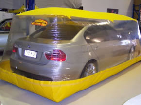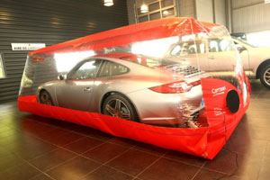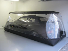 Indoor EVO CarcoonThe EVO model is probably the most versatile Carcoon of all. This model comprises of a base mat and a separate top cover. Simply drive the car onto the base mat, place the top cover over the car, connect the zipper and plug in the 12 Volt power supply. This model is ideal if your car is located away from the garage door, meaning that you do not have direct access to drive it straight onto the base of the EVO Carcoon. The beauty of the EVO Carcoon is that it can be accessed from any side. This model can also be custom made to accommodate any vehicle size, including extra tall vehicles. Even reduced height units can be custom made. |