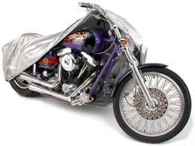 the motorcycle is protected. Motorcycle covers are offered in three