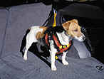 - Dog Harness attaches to any vehicle's seatbelt system.