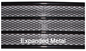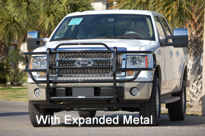 The expanded metal is a steel mesh screen placed in the center of the brush guard protecting the vehicle's front grille from objects and debris. Front brush guards can be ordered with or without the expanded metal. NOTE: View and compare brush guard with or without expanded metal.