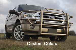Custom Color Powder Coating is available and is the same industrial strength powder coat finish as the standard high gloss black finish will make any front grille guard uniqe by matching to the vehicle's exterior body color.